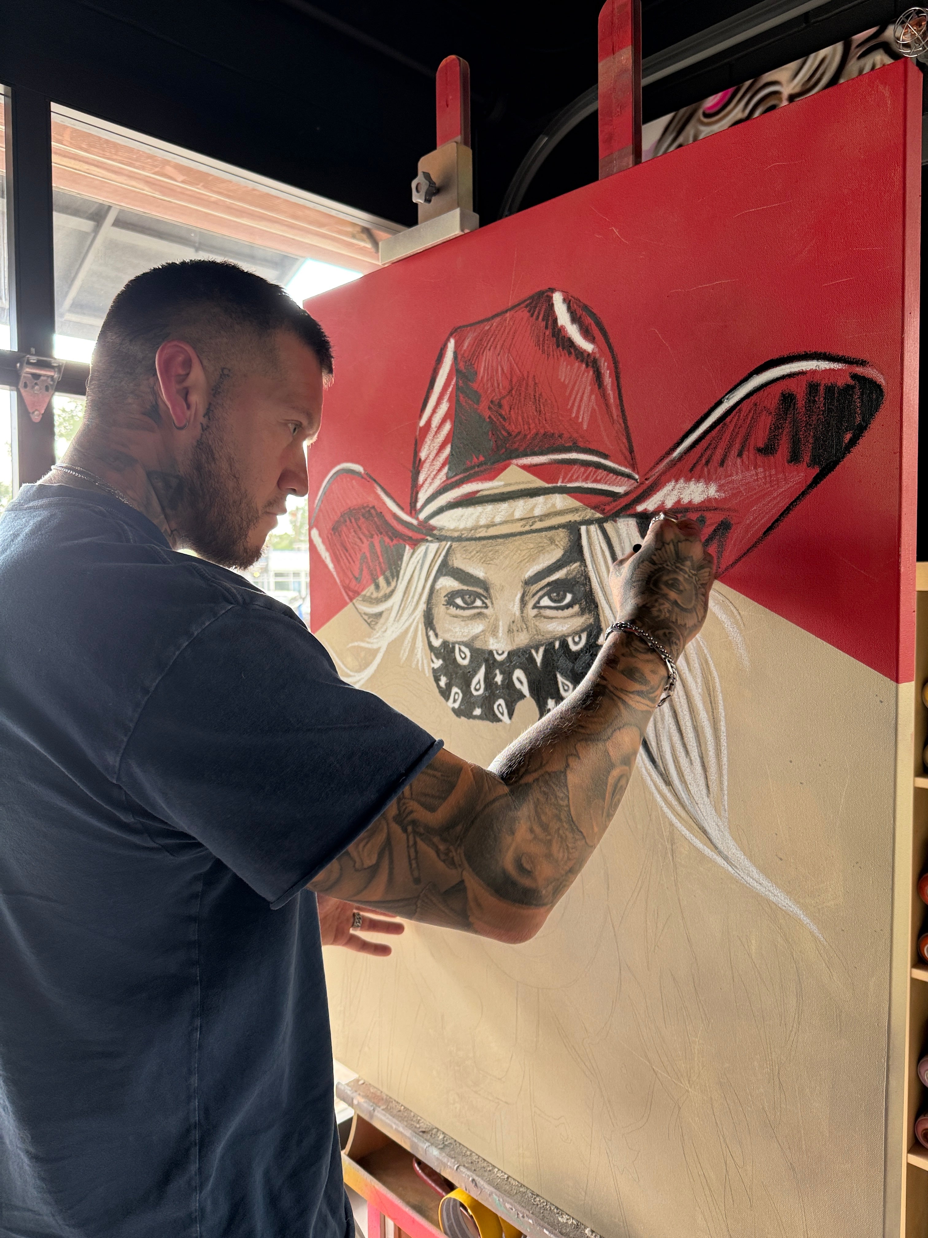 Specializing in large-scale murals and canvas work, his art is instantly recognizable for its vivid color palettes and dynamic compositions. While portraits remain a central theme, he has recently expanded his repertoire to explore a wide range of subjects, styles, and mediums—pushing boundaries and constantly reinventing his approach.
